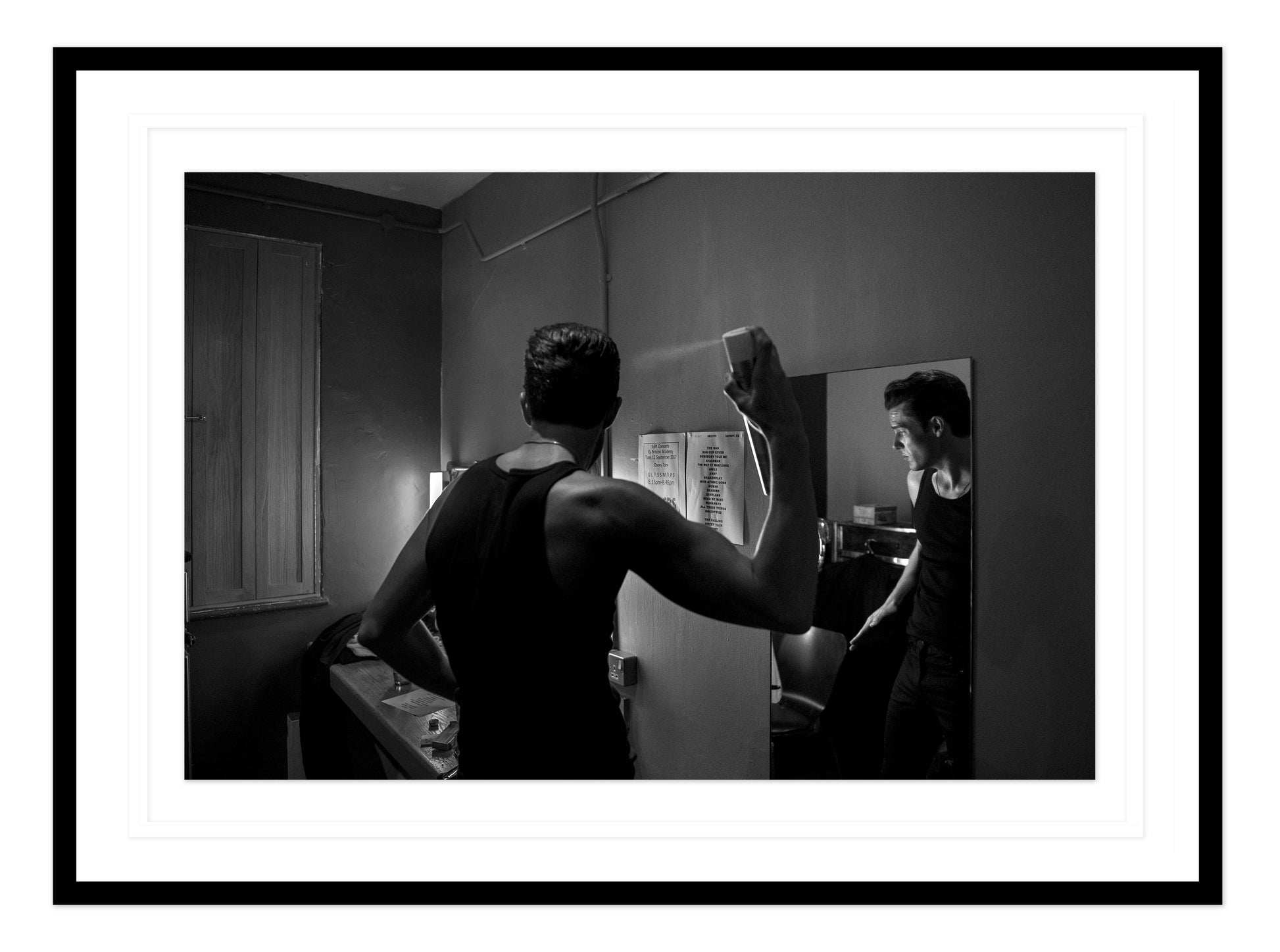 Archival print of The Killers' Brandon Flowers backstage at London's Brixton Academy for a warm-up gig, 2017.