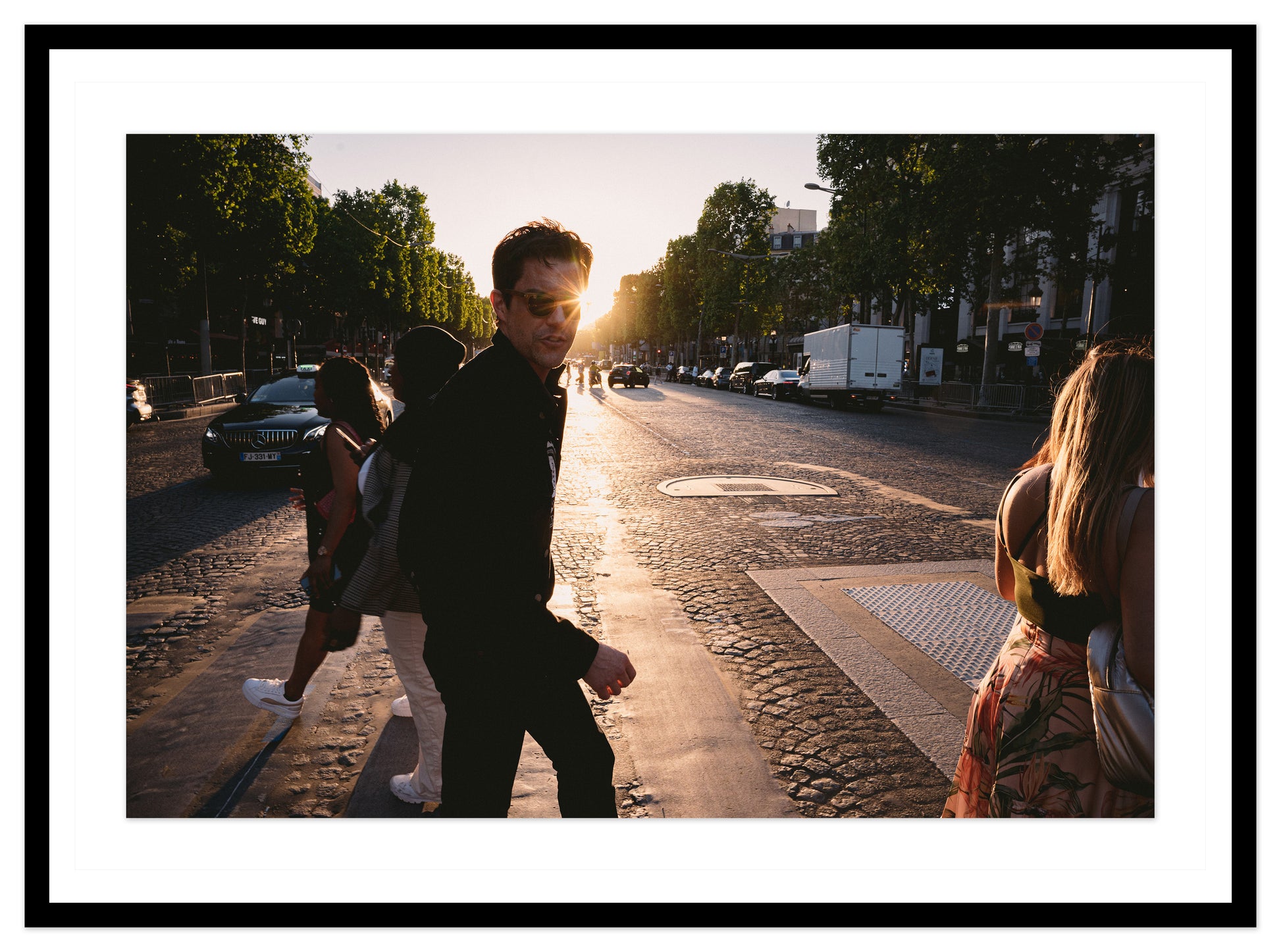 Archival print of The Killers' Brandon Flowers crossing the famous Avenue des Champs-Élysées in Paris, 2022.