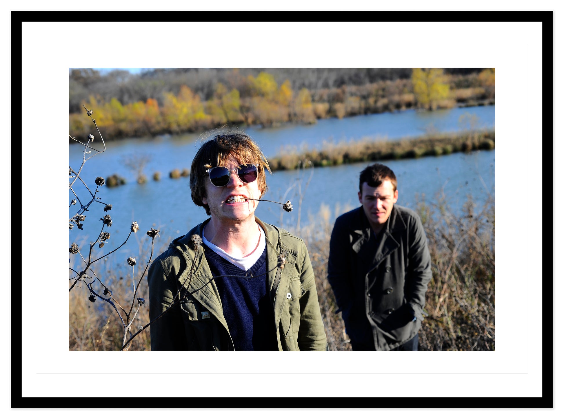 Archival print of Matt Schultz and Brad Schultz of Cage The Elephant between shows in Texas. 2009