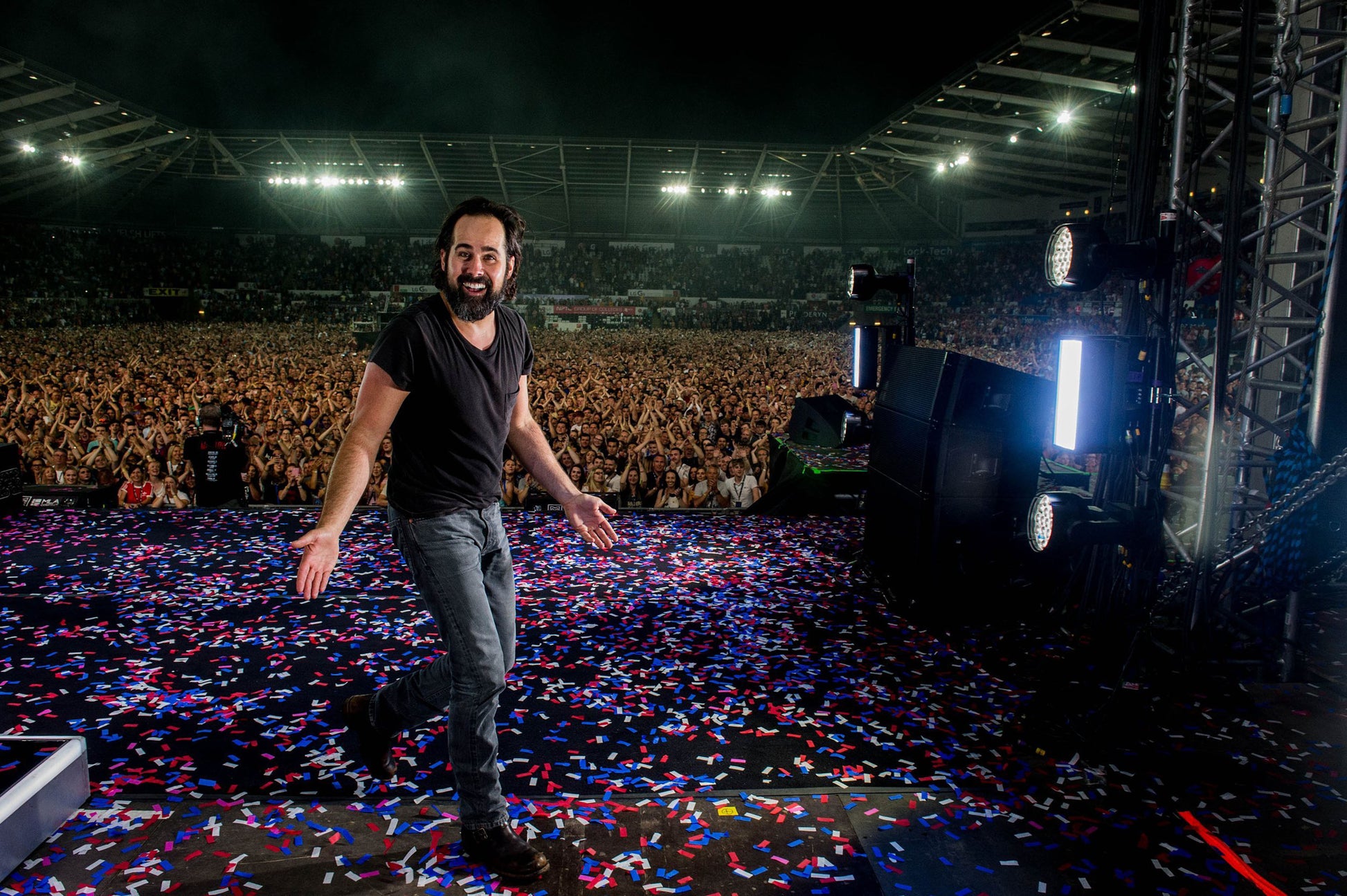 Archival print of The Killers' Ronnie Vannucci - Curtain call, Swansea, UK, 2018.